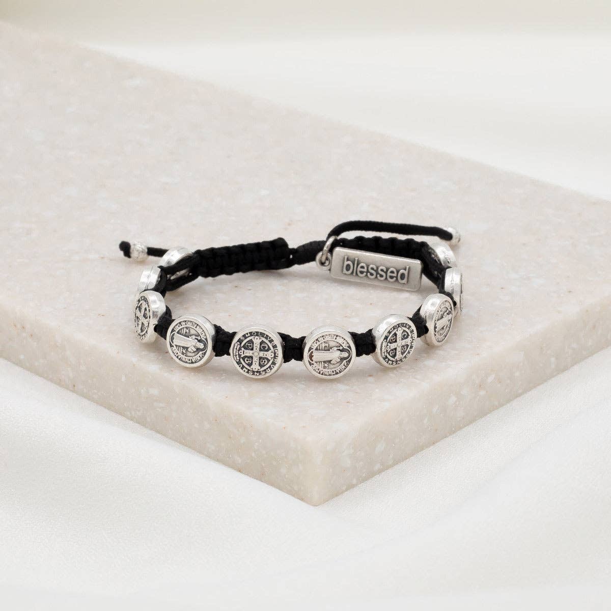 Handwoven in Medjugorje, Bosnia and Herzegovina featuring 10 silver-tone Saint Benedict Medals and our signature "blessed" tag