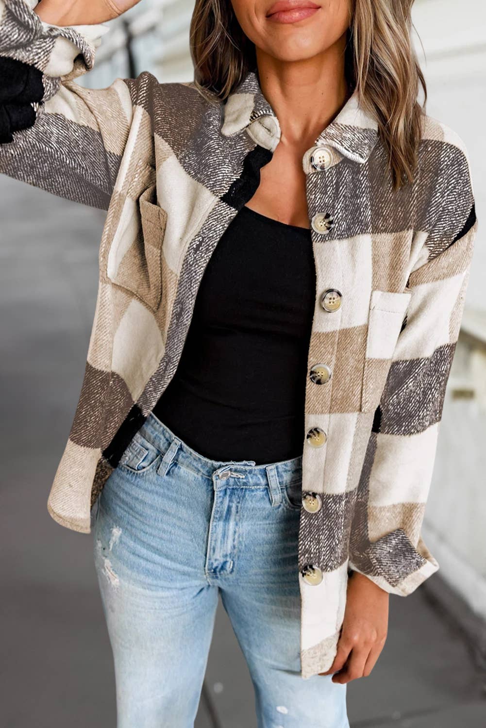 Plaid Color Block Long Sleeve Jacket | S-XL