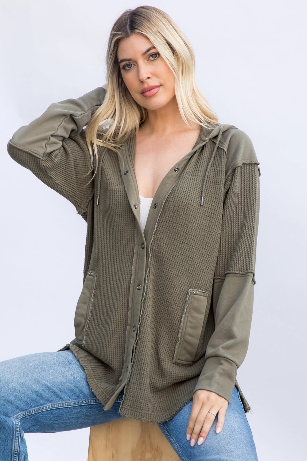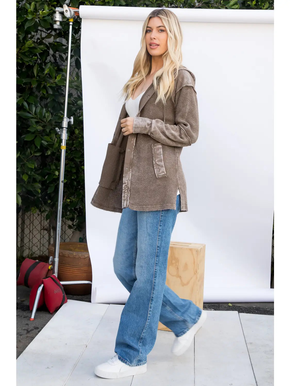 PREORDER: Garment Dye Heavy Knit Waffle Hoodie Shacket