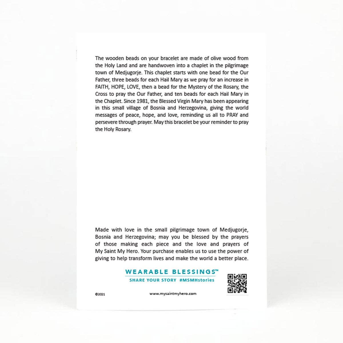 * The Rosary Olive Wood Bead Blessing Bracelet comes on an inspirational card and can be used as a prayer chaplet/rosary