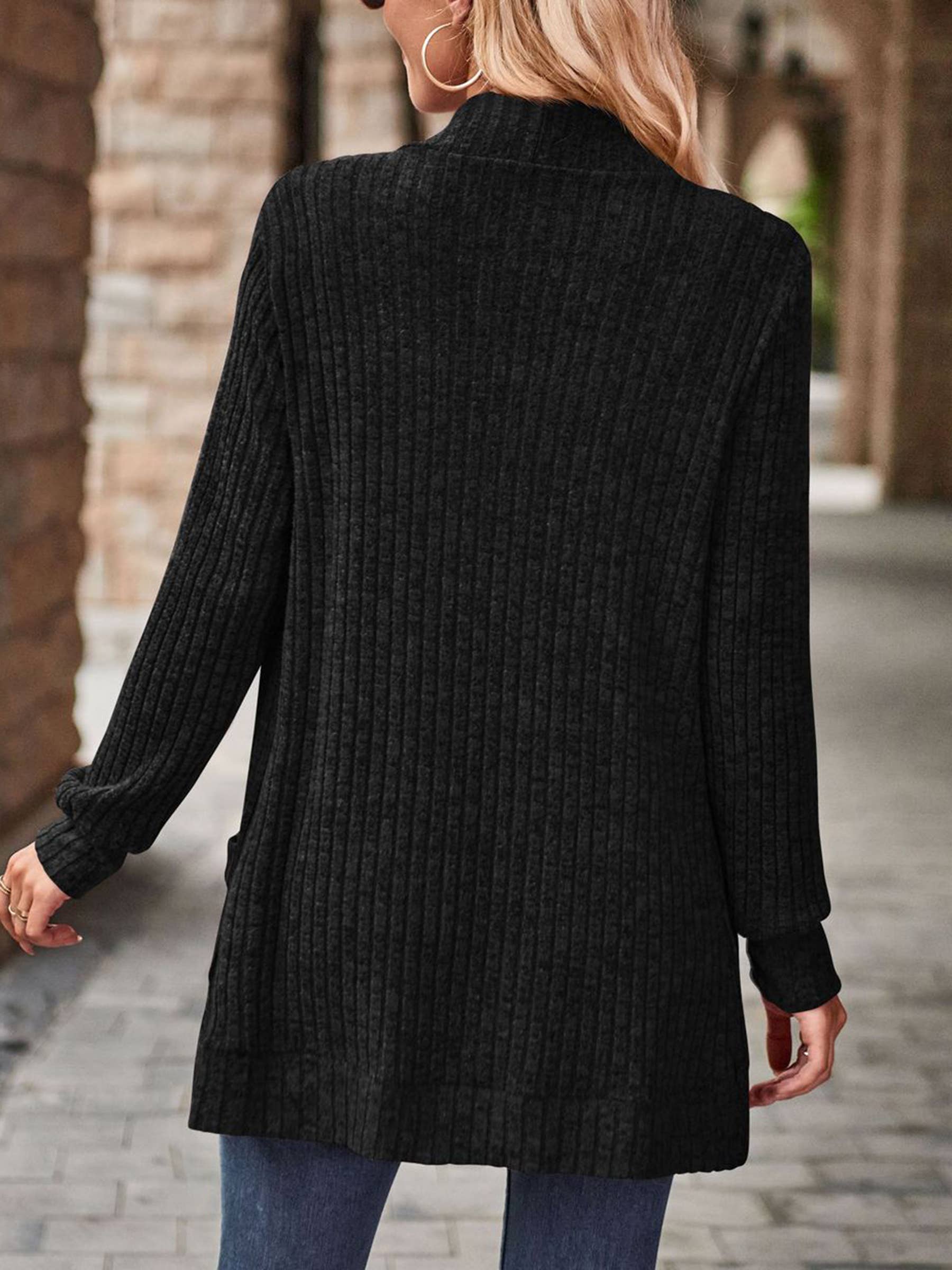Solid Pit Stripe Matte Casual Long Sleeved Cardigan Jacket