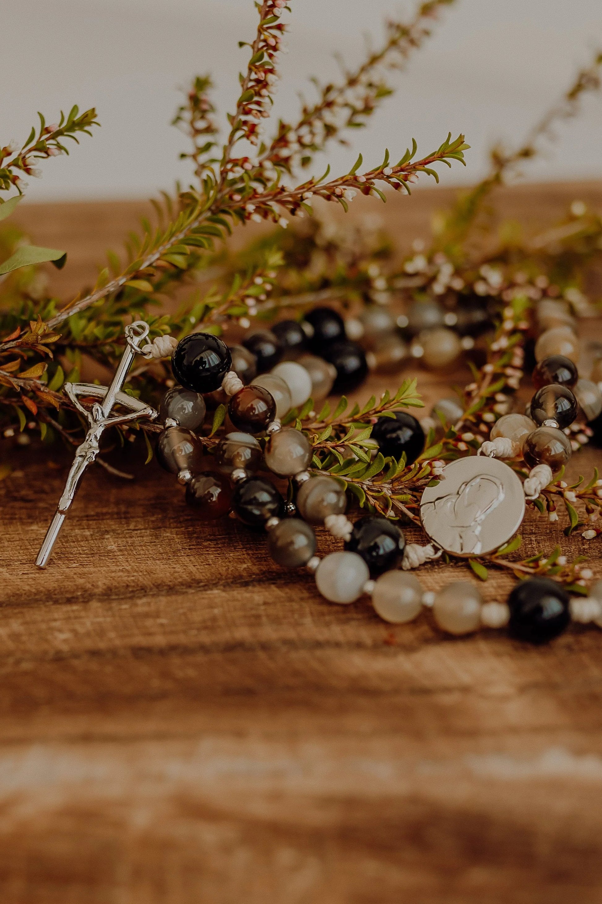 Padre Pio is often seen in photos wearing brown, which is the purpose behind the brown & earth tone beads.